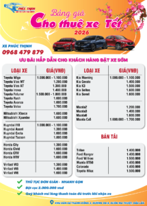 Thuê xe tự lái du xuân Tết 2026 – Chủ động hành trình cùng Nhà Xe Phúc Thịnh Bạn đã chuẩn bị kế hoạch cho chuyến du xuân Tết 2026 cùng gia đình và người...